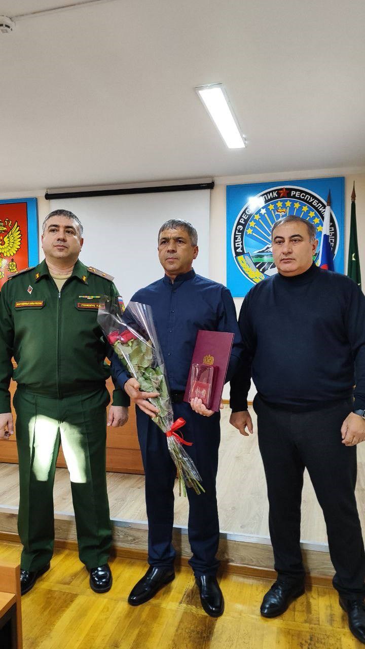 Глава Теучежского района Адам Удычак и военный комиссар Рамазан Гонежук вручили сегодня заслуженные Ордена и Медали СССР родственникам участников Великой Отечественной войны.