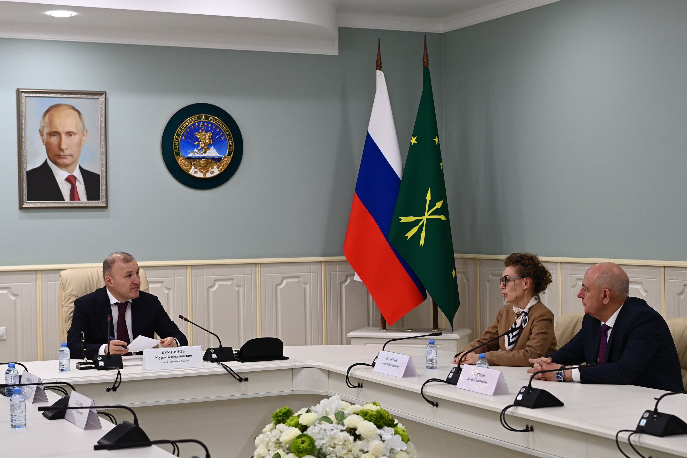 В ходе встречи стороны обсудили перспективы дальнейшей совместной работы в сфере муниципального сотрудничества, культуры, образования, связей с черкесской диаспорой за рубежом. Руководитель Представительства МИД РФ в г. Краснодаре Ольга Шалимова отметила, что Министерство готово содействовать как гуманитарным, так и экономическим международным миссиям республики.