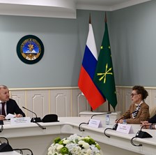 В Доме правительства РА состоялась встреча Главы Адыгеи Мурата Кумпилова с руководителем Представительства МИД РФ в г. Краснодаре Ольгой Шалимовой. В беседе также приняли участие руководитель Администрации Главы РА и КМ РА Владимир Свеженец и помощник Главы РА по внешним связям и инвестиционной политике Бэлла Хакунова.