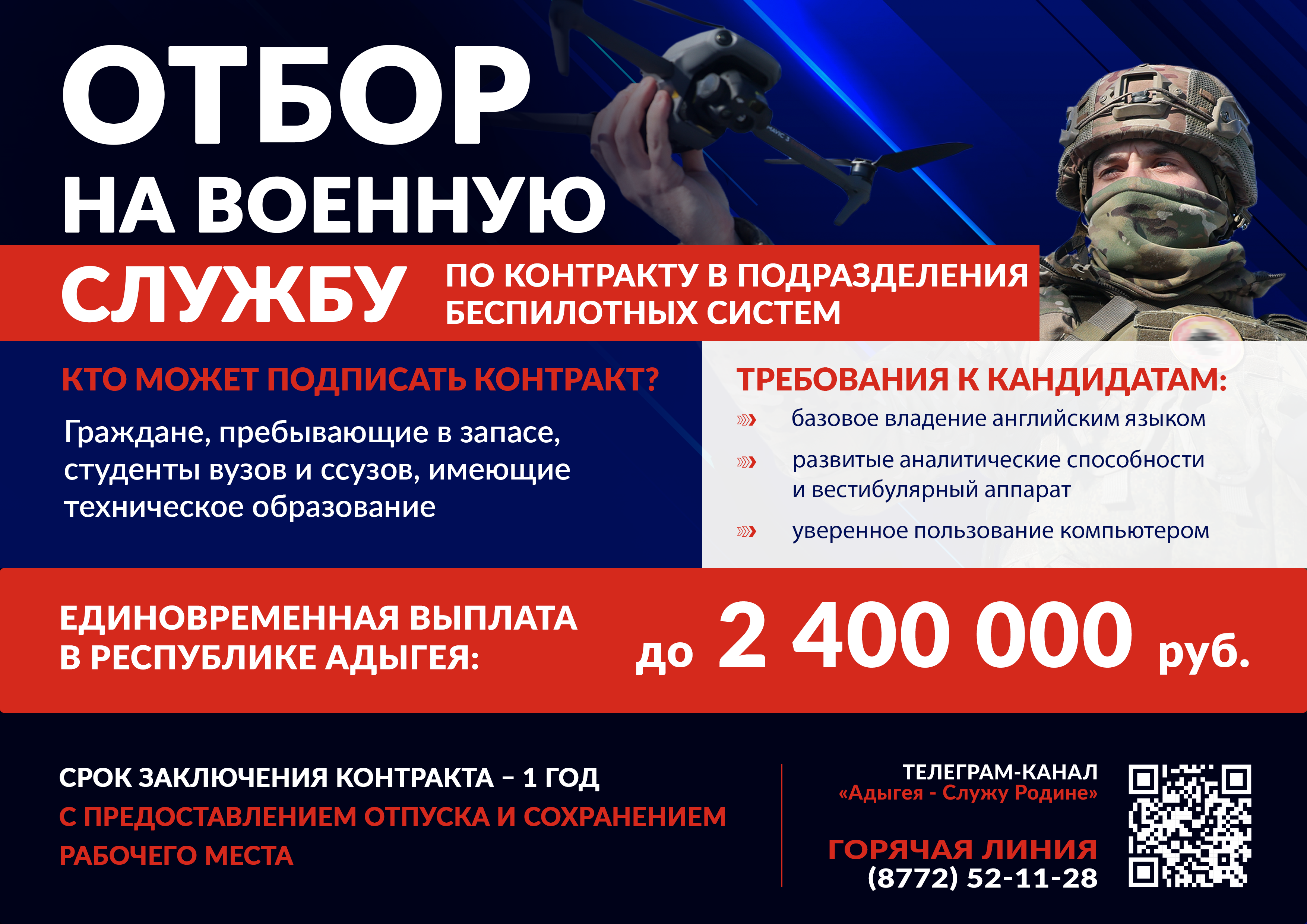 Напоминаем, в Адыгее проходит набор в элитные войска нового поколения – войска беспилотных систем!