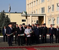 Перед началом торжества руководство республики и правоохранительных органов, ветераны и общественники отдали дань уважения сотрудникам органов внутренних дел, погибшим при исполнении служебных обязанностей, возложив живые цветы к мемориалу, воздвигнутому в их честь на территории министерства. Собравшиеся в зале почтили память павших минутой молчания.