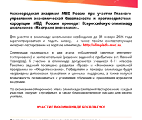 Подробнее об условиях проведения можно узнать на сайте олимпиады http://olimpiada-mvd.ru в разделе «Документы», по телефону 8(831)421-72-60 или на официальной странице олимпиады Вконтакте https://vk.com/id326136346