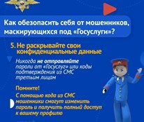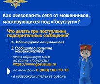 Помните: коды из сообщений позволяют изменить пароль для входа на портал, а это означает полный доступ мошенников к вашему профилю. При поступлении подозрительных сообщений с описанными выше признаками следует заблокировать отправителя и сообщить о попытке мошенничества через обратную связь на сайте «Госуслуги», по горячей линии 8 (800) 100-70-10 или в правоохранительные органы.
