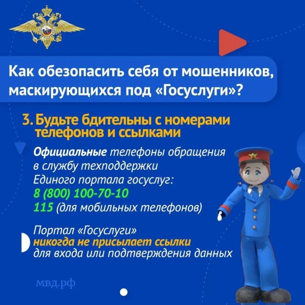МВД России информирует граждан о мерах профилактики дистанционных мошенничеств с использованием «Госуслуг»