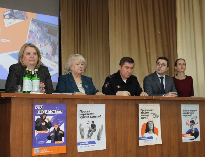 Выступающие подробно разъяснили аудитории как работает данная мошенническая схема, какие уловки используют аферисты, чтобы завлечь людей, в том числе молодежь, в ловушку.