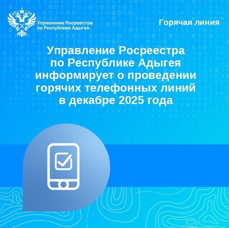 Управление Росреестра по Республике Адыгея информирует о проведении горячих телефонных линий в декабре 2025 года