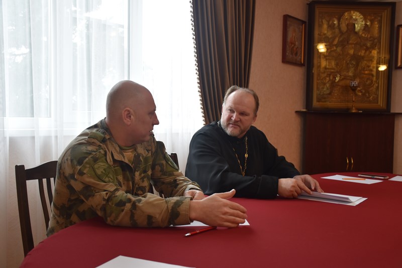 Встреча прошла в канцелярии собора, где вместе с Иерем Виталием Козловым офицер Управления Росгвардии по Республике Адыгея напомнили ребятам о глубоком понимании ценностей Отечества, уважения к истории страны, гордости за подвиги, особое внимание уделили связи поколений и роли каждого гражданина в укреплении и процветании Родины.