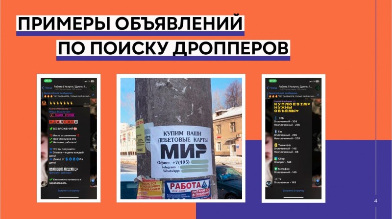 Цель кампании - научить людей распознавать мошенников, рассказать о наиболее распространенных схемах обмана, раскрыть ключевые индикаторы, которые сигнализируют о дропперстве.