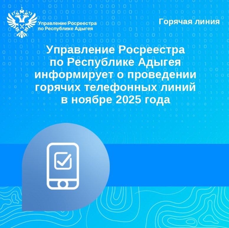 Управление Росреестра по Республике Адыгея информирует о проведении горячих телефонных линий в ноябре 2025 года