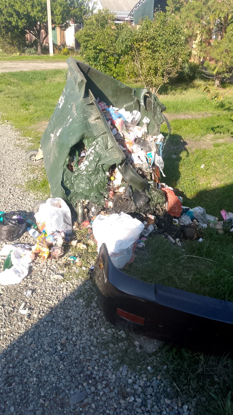 Во время планового выезда 7 октября в Майкопе, по ул. Тургенева, 206, экипаж мусоровоза Адыгейского филиала ООО «ЭкоЦентр» обнаружил полностью сгоревший контейнер для сбора твердых коммунальных отходов. Вместе с накопленными отходами контейнер был погружен в мусоровоз и вывезен.